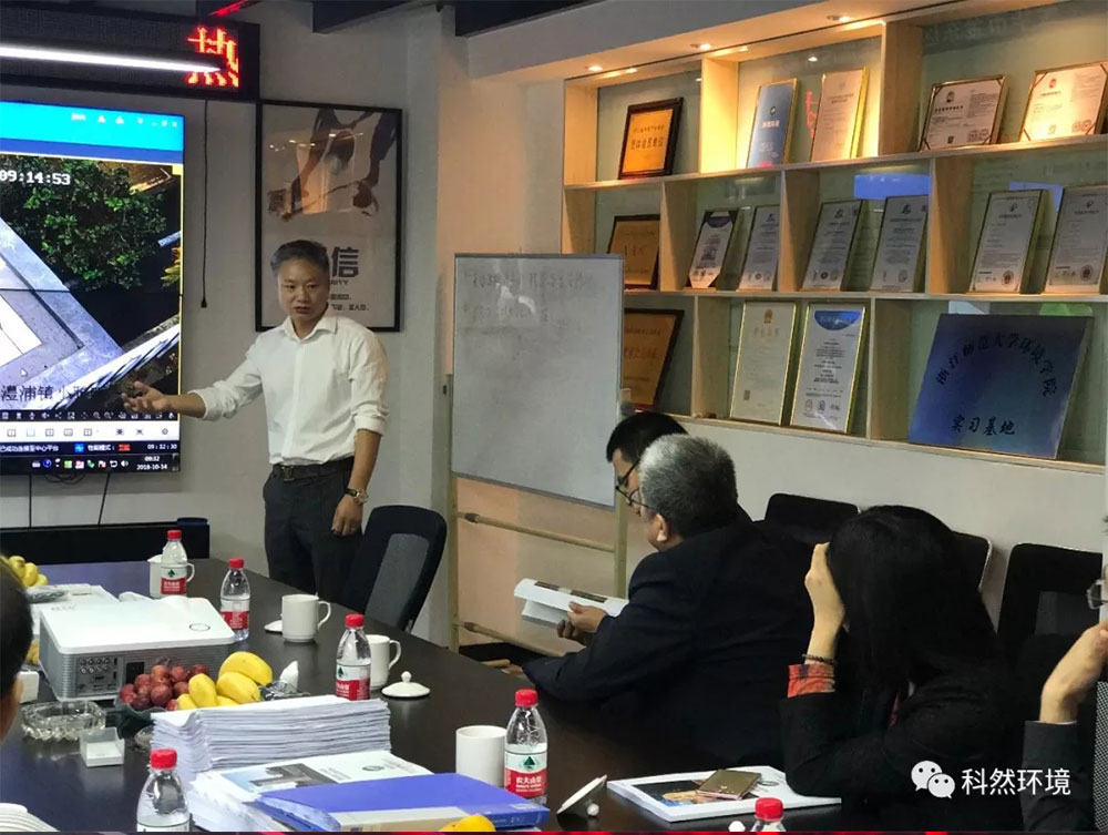 科然環境董事長黃利林向各位領導介紹了金東區“五水共治”農村生活污水處理設施的建設過程和農村生活污水處理設備長效管理情況。