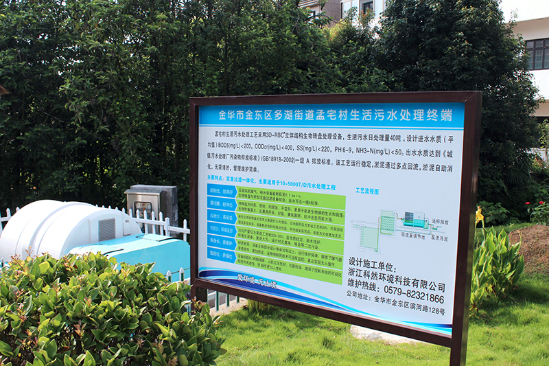 金華市多湖街道孟村生活污水處理工藝采用3D-RBC立體結構生物轉盤處理設備,生活污水日處理量40噸,